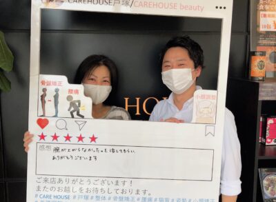 お客様の声第56弾!! 2023.05.24 お客様の声お知らせブログ こんにちはCARE HOUSEです。今回でお客様の声第56弾です。ご協力して頂いた方はY様です。何年も通われており、初めは四十肩などで肩が挙がらなかったですが、今では問題なく挙がるようになっています。いつも娘さんのお話など楽しい会話ありがとうございま... 続きを読む