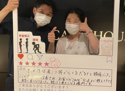 お客様の声 第36弾 2022.11.16 お客様の声お知らせブログ こんにちはCARE HOUSE戸塚です。お客様の声第36弾です。今回ご協力頂いたのはI様です。股関節痛がお悩みでご来院されてから施術を続け、今は痛みも緩和しました。今後もサポートさせて頂きます。I様ご協力いただきありがとうございました。 続きを読む
