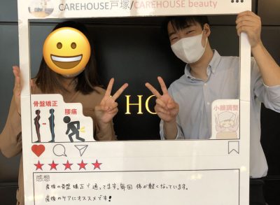 お客様の声第137弾! 2025.03.26 お客様の声お知らせブログ こんにちは!CARE HOUSE戸塚です。今回ご協力いただいたのはH様です。産後のケアで通われ、骨盤矯正を主に行なっています。当院では産後の矯正だけでなく、姿勢の矯正も行なっています。もし姿勢や産後のお悩みがございましたら、いつでも当院にいらしてく... 続きを読む
