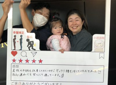お客様の声第121弾! 2024.10.09 お知らせブログ みなさんこんにちは。本日ご協力頂いたのはI様です。ブログ画像産後の骨盤矯正、育児の疲れを取るために来院されています。I様ご協力ありがとうございました!#骨盤矯正#全身整体#整体#小顔矯正#マタニティ#眼精疲労#ヘッドマッサージ#産後#ヘッドスパ#も... 続きを読む