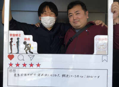 お客様の声第91弾!! 2024.02.21 お客様の声お知らせブログ 本日でお客様の声第91弾です。今回撮影にご協力いただいたのは、肩の重だるさ改善目的で来院されているO様です。一度の治療でダルさは取れましたが、筋肉の硬さがまだ残っているので引き続きケアさせていただきます。O様ご協力いただきありがとうございま... 続きを読む
